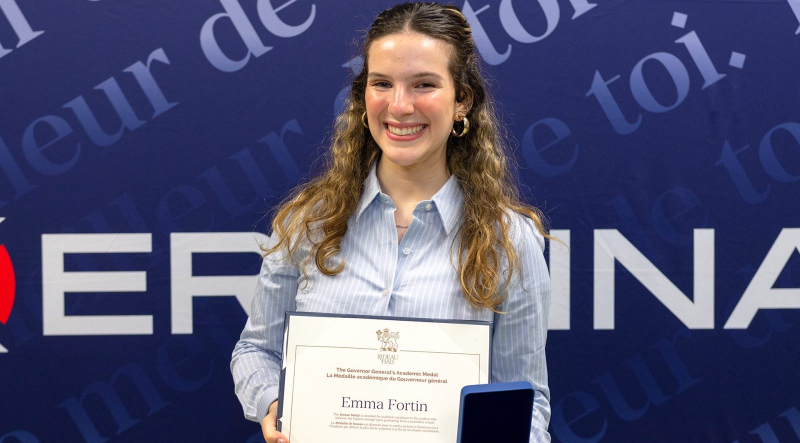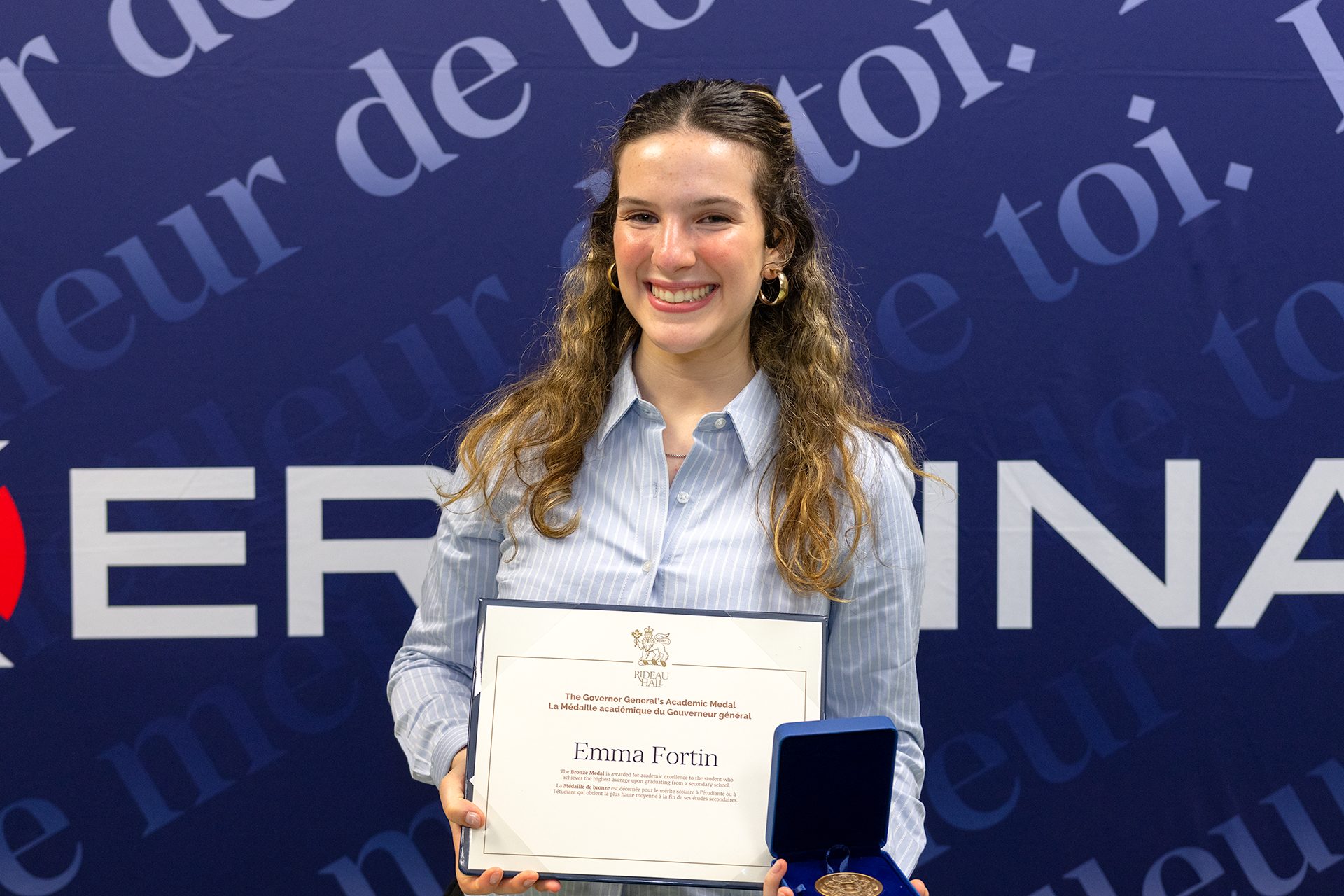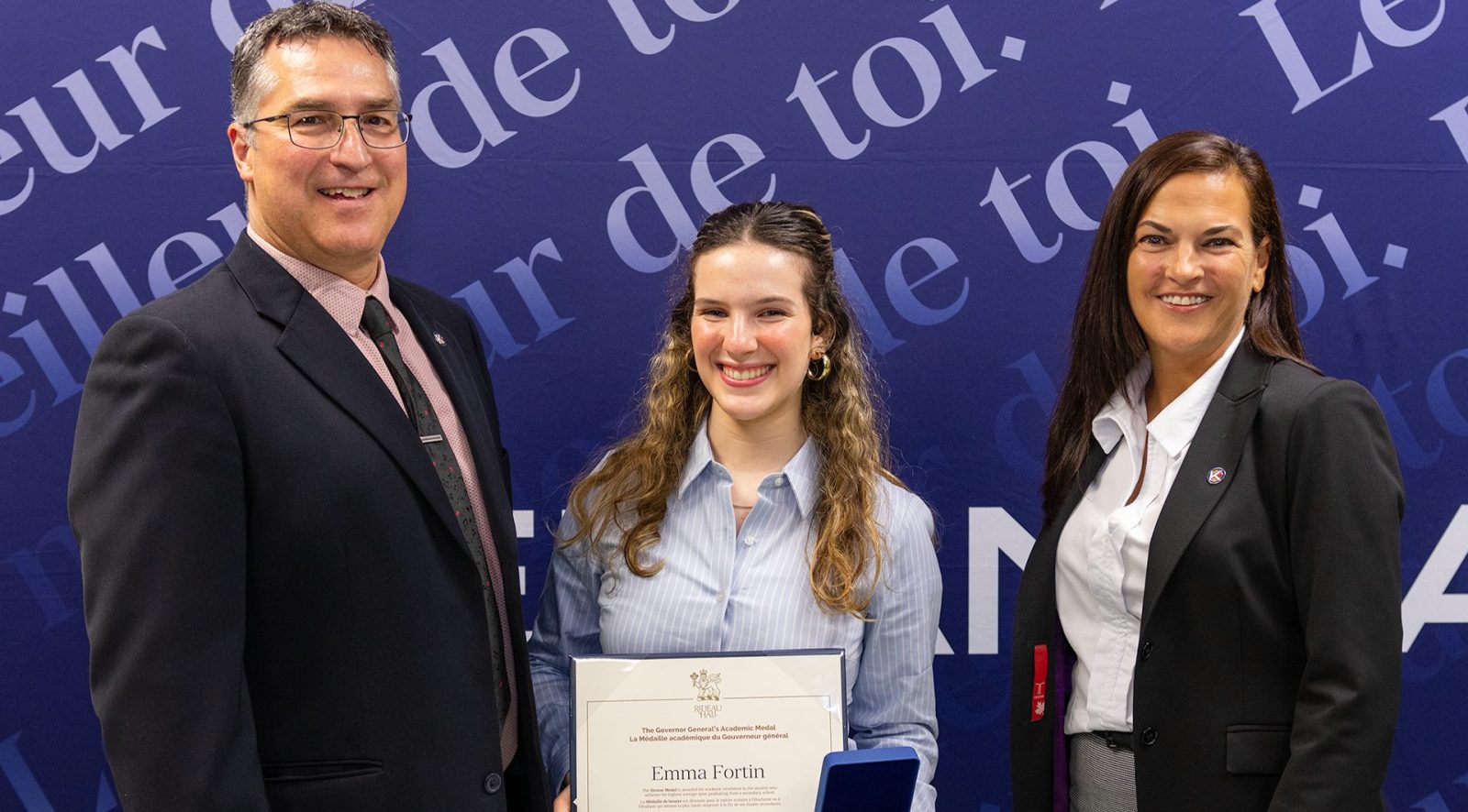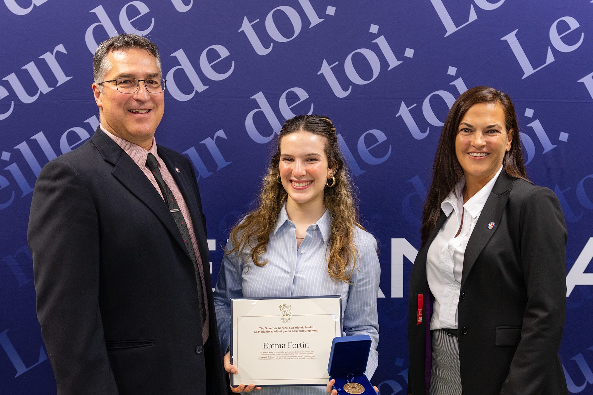 Cette médaille, remise au nom de la gouverneure générale lors de l’Assemblée générale annuelle des parents, souligne l’excellence académique de la diplômée ayant obtenu la meilleure moyenne générale au terme de ses études secondaires.
